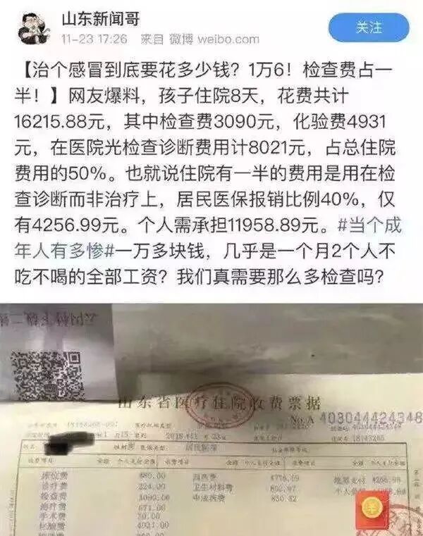 为什么中国人害怕生病,因为病不起,去次医院,说不定就破产了,社会上天价医疗费的新闻并不在少数: